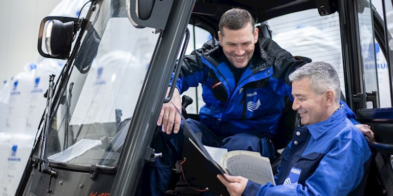 Stórur partur av arbeiðsuppgávunum er knýtt at koyring við trukki.